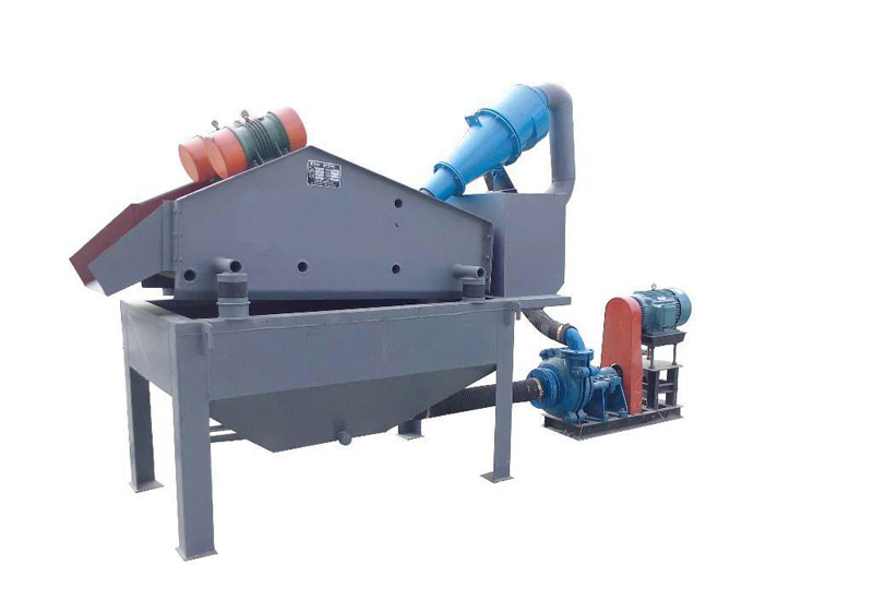 直线筛输出细砂含水量(25%)调解细度模数可通过改变泵的转速,改变砂浆浓度,调节水量,更换出砂嘴来实现,从而完成清洗脱水和分级三种功能。
