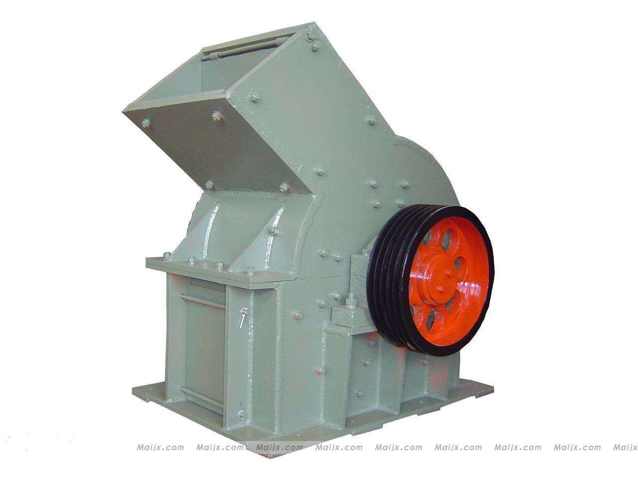 成。电动机带动转子在破碎腔内高速旋转。物料自上部给料口给入机内,受高速运动的锤子的打